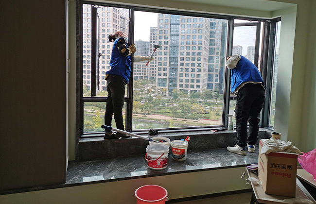5、裝修痕跡的清理:針對裝修后遺留的漆點、膠跡、涂料點、水泥塊、鉛筆痕使用清潔球、專業(yè)鏟刀、除膠劑、稀釋等專用藥劑進行細微處理。
